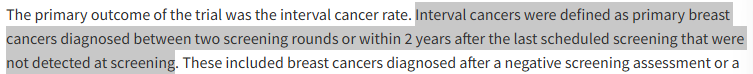 Interval cancer(取り零し癌)の定義 None Twitter Facebook はてブ Pocket LINE コピー 2026.02.08 interval breast cancer(取り零し乳癌)は乳癌が見つからなかった検診から次の検診までか2年以内に見つかった(診断された)乳癌 次の検診予定までに見つかるそのような取り零し乳癌の20-30%は乳癌診断に至らなかった直近の検診で本来は見つかり得たと推定されている。